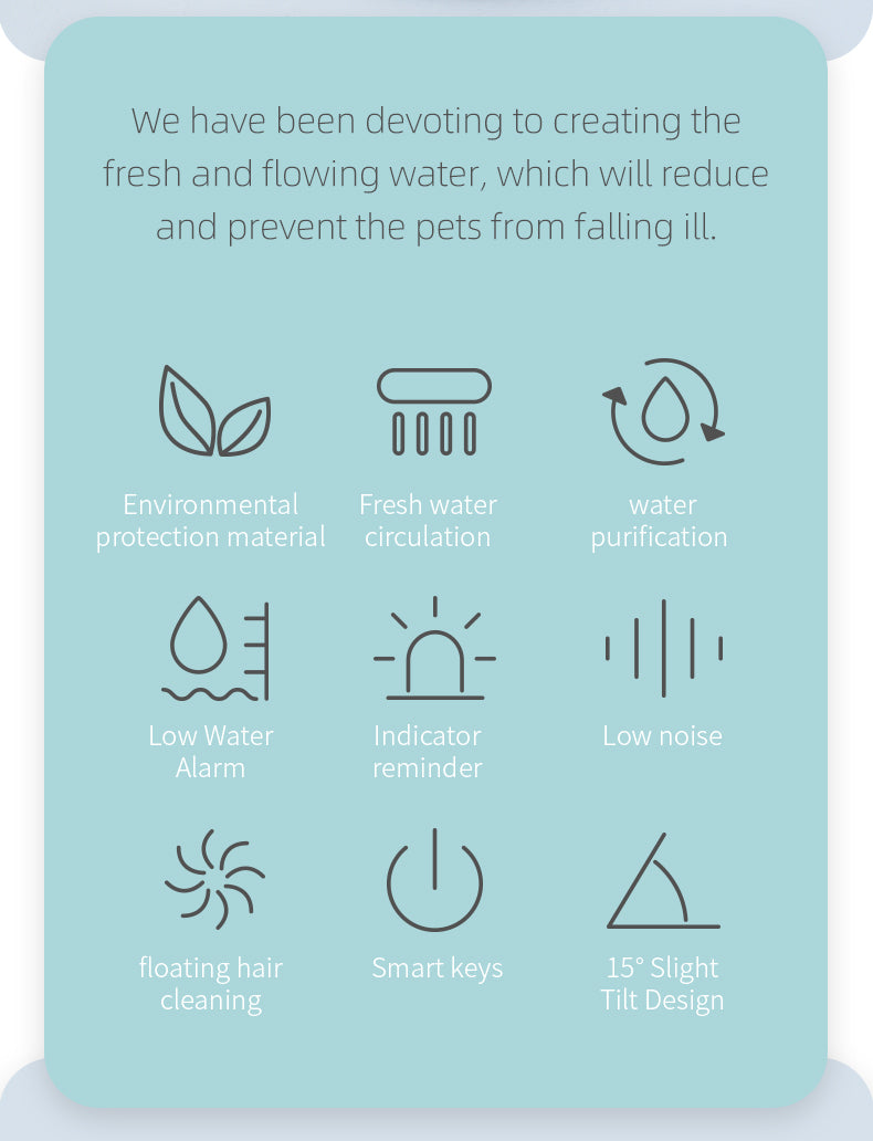 The water fountain will continuously provide water for your pet and the additional self-cleaning features will ensure that the water is always fresh and clean. This is perfect for cat owners who are looking for a clean water source. The fountain is both very efficient and quiet, and will not disturb the peace and quiet of your home