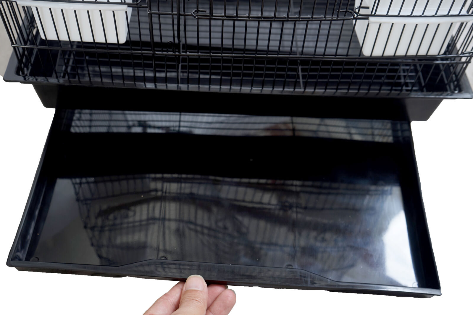 Crafted from durable wrought iron with an epoxy-coated finish, the cage offers long-lasting strength and style. It features bird toys, multiple access doors, food and water bowls, timber perches, and a slide-out tray for effortless cleaning. The elegant stand comes equipped with four castor wheels to ensure easy mobility, along with a convenient lower wire shelf for added storage.