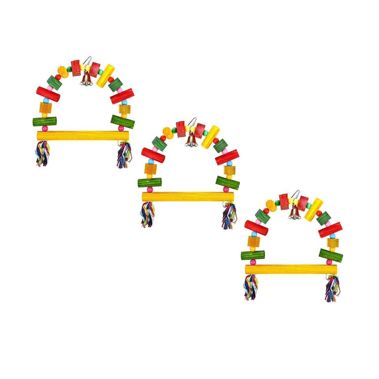 3 x Hanging Swing Bird Parrot Parakeet Cockatiel Budgie Toy With Bells