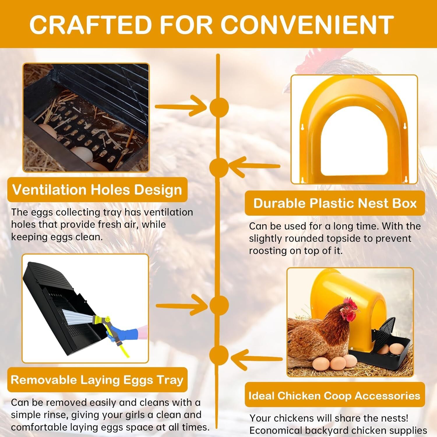 - Forward-tilted tray allows eggs to roll safely into a protected area for easy collection