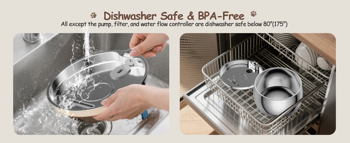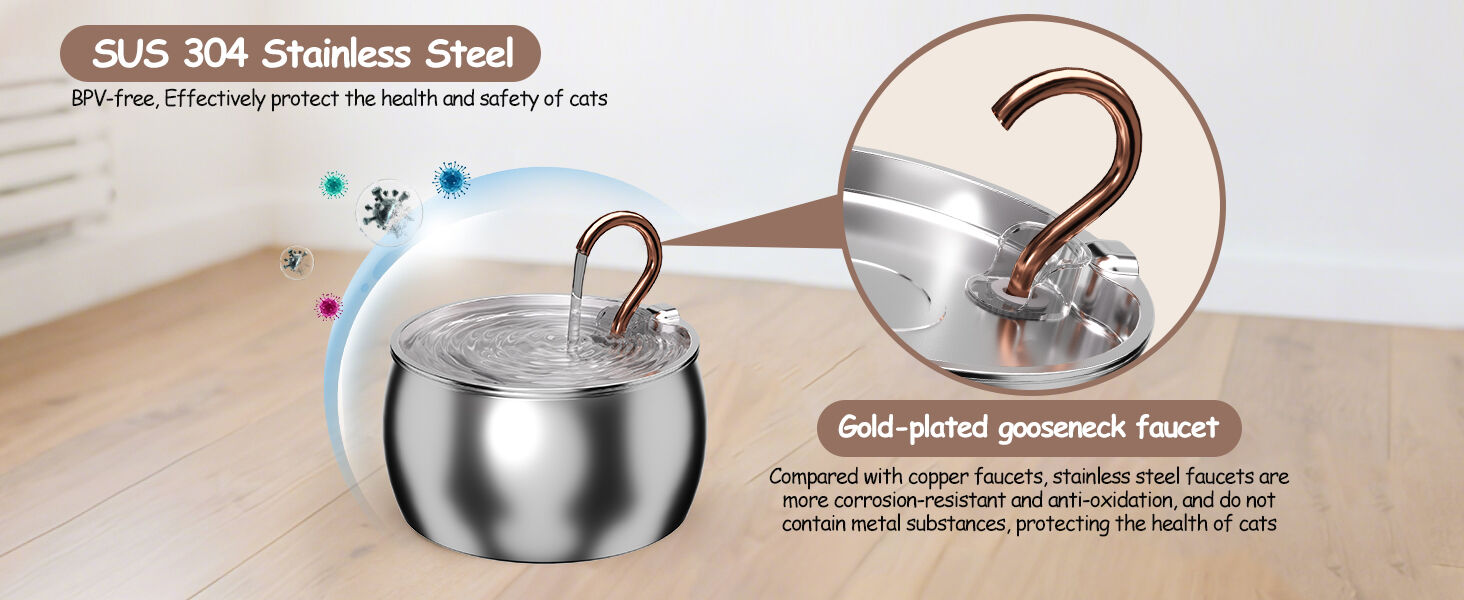 - Premium 304 Stainless Steel: Allows you to easily check the water level without opening the fountain. Crafted from high-quality SUS304 stainless steel, this cat water fountain is durable, corrosion-resistant, and helps maintain fresh water at all times.