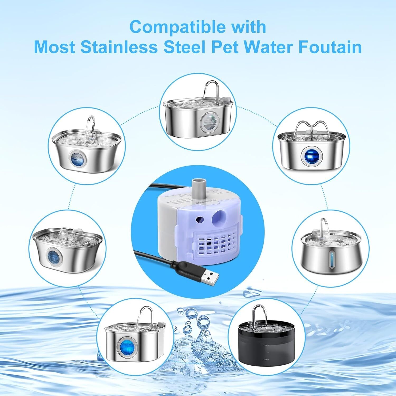 Compatible with most stainless steel pet water fountains (check model before purchase)