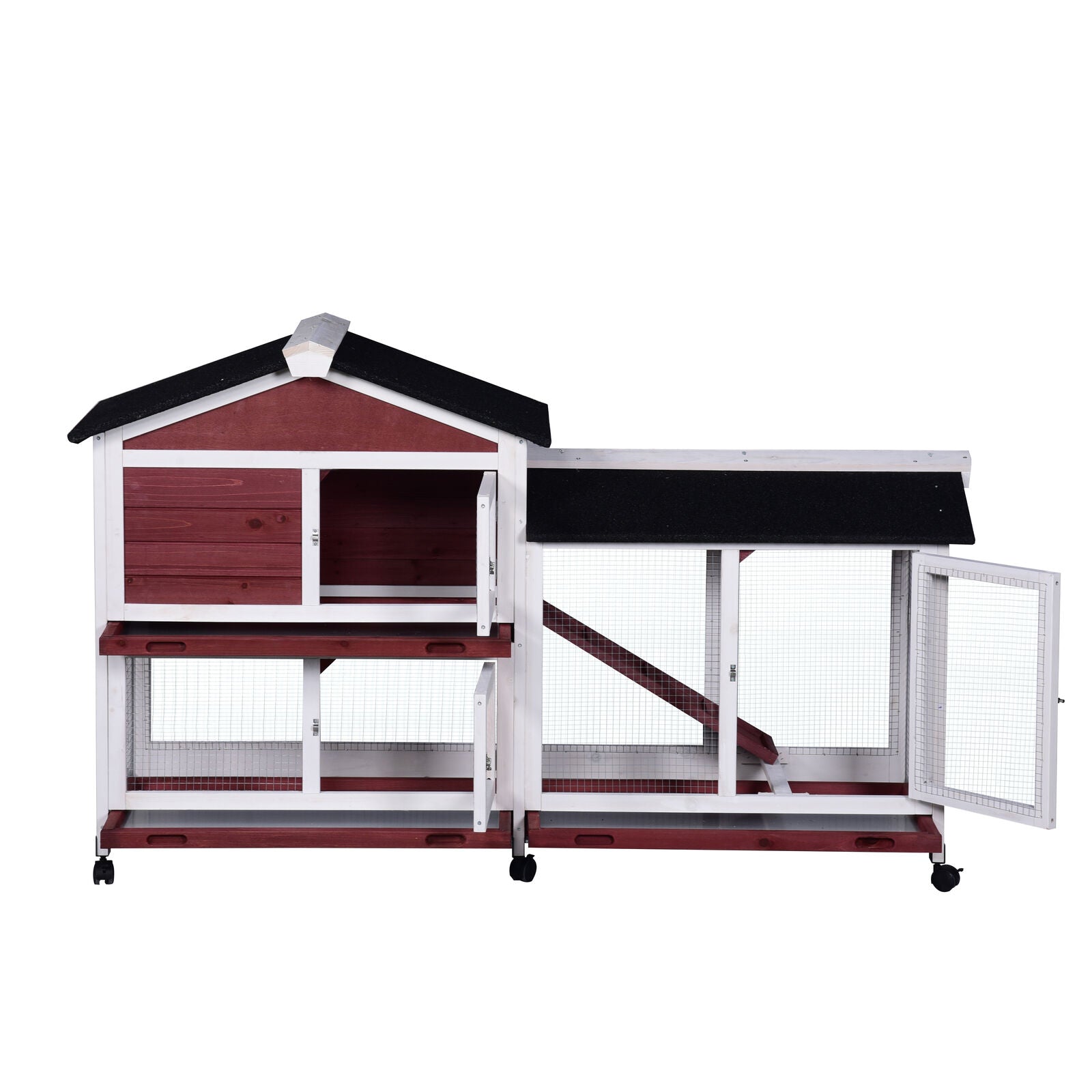 Three access doors provide easy entry, while three pull-out trays make cleaning simple and hassle-free. The built-in wheels enable effortless movement of the hutch, and assembly is straightforward with the included step-by-step instructionsno professional help is needed.