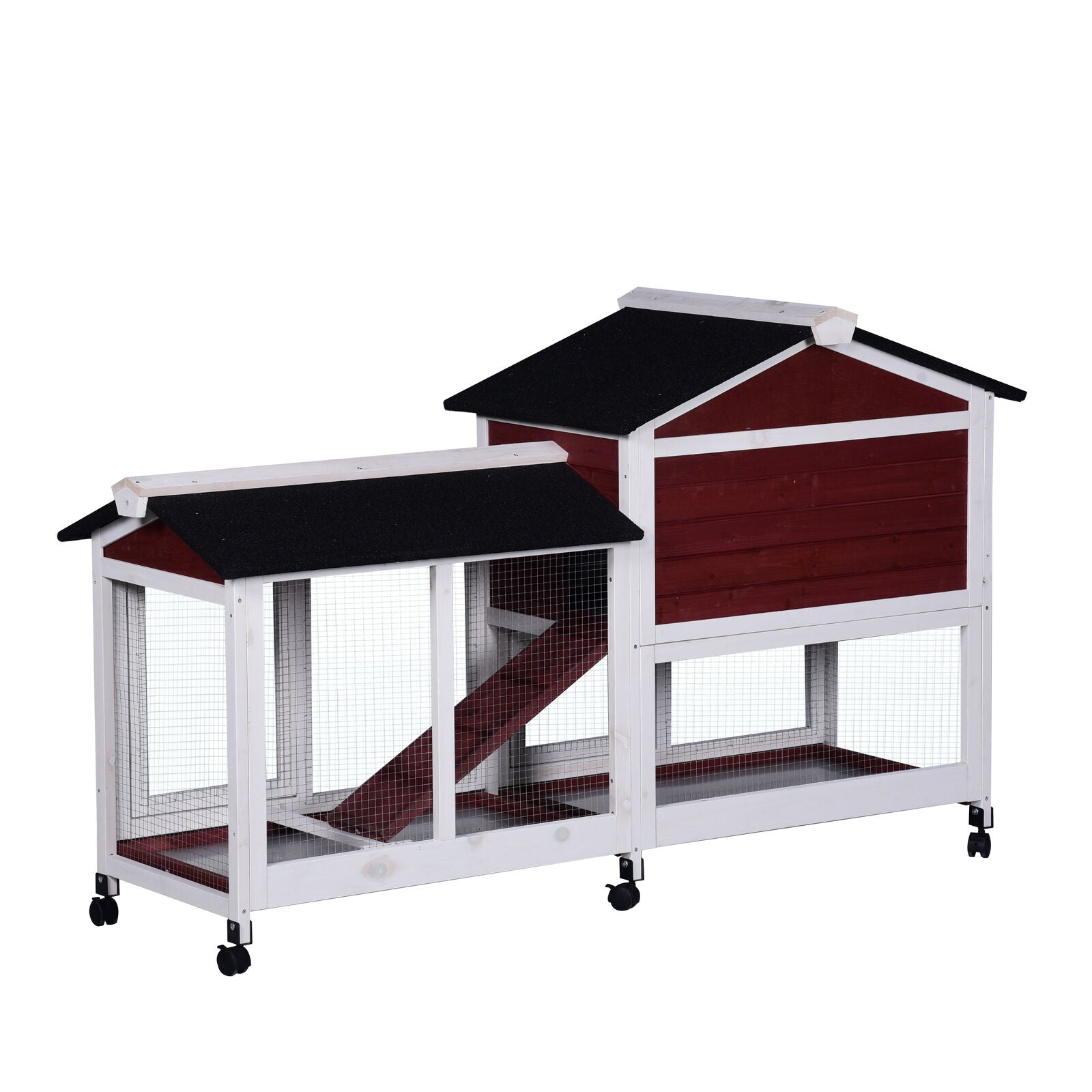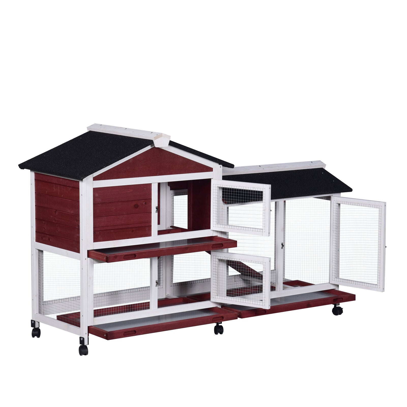 YES4PETS Double Storey Large Rabbit Hutch Guinea Pig Cat Cage Ferret Cage with Pull-Out Trays & Wheels