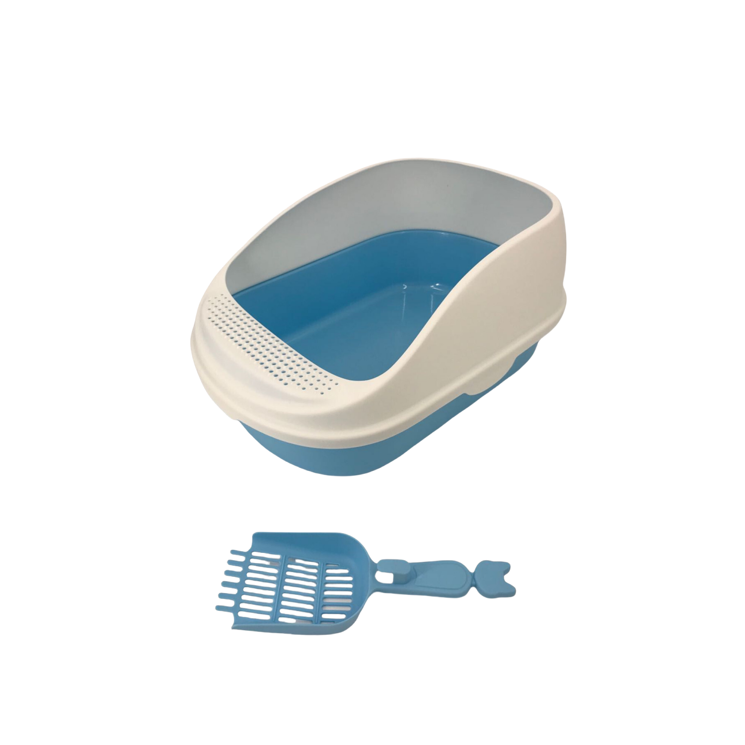 YES4PETS Large Deep Cat Toilet Litter Box Tray High Wall with Scoop Blue