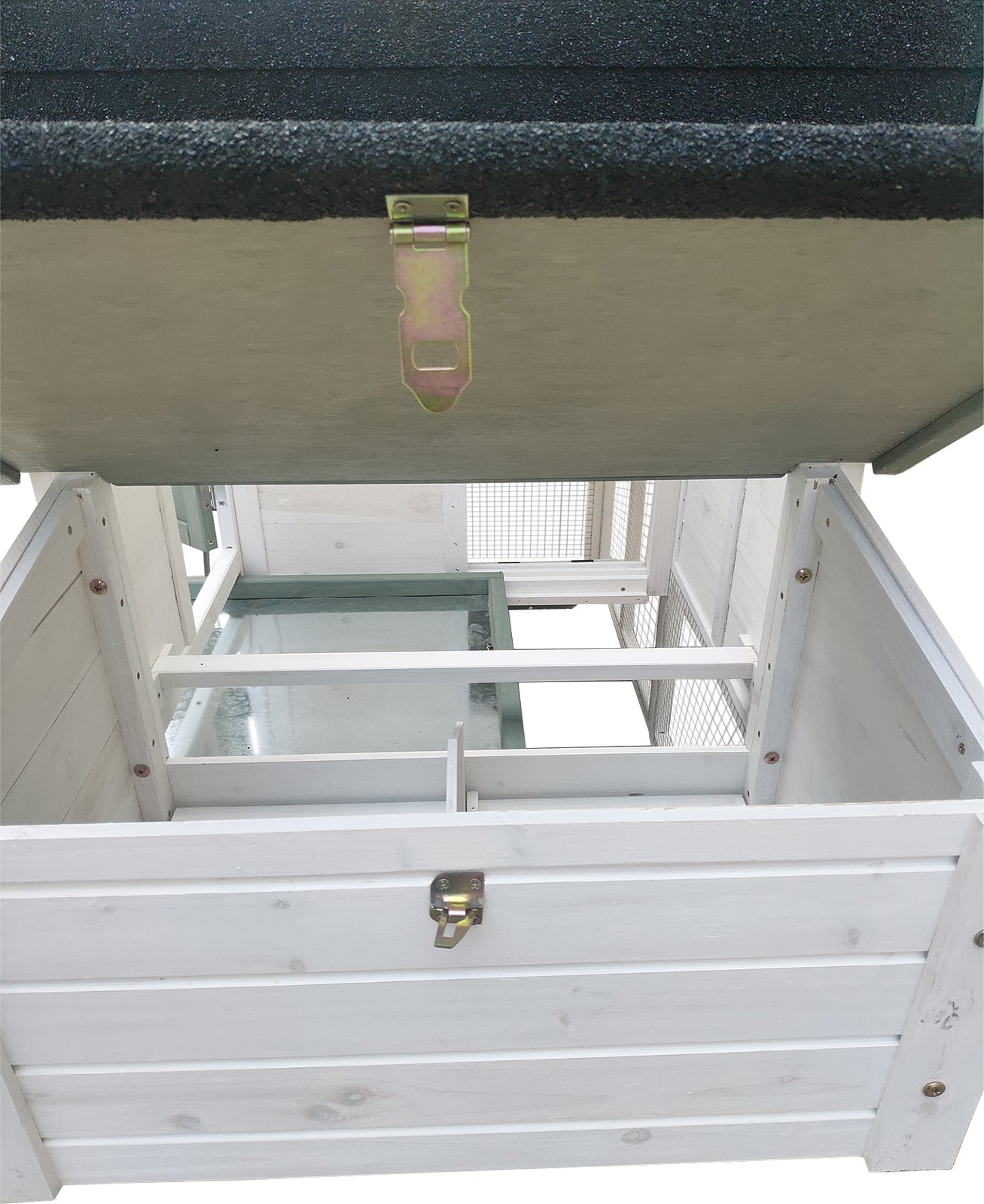 - Two large nesting boxes for the hens to lay in