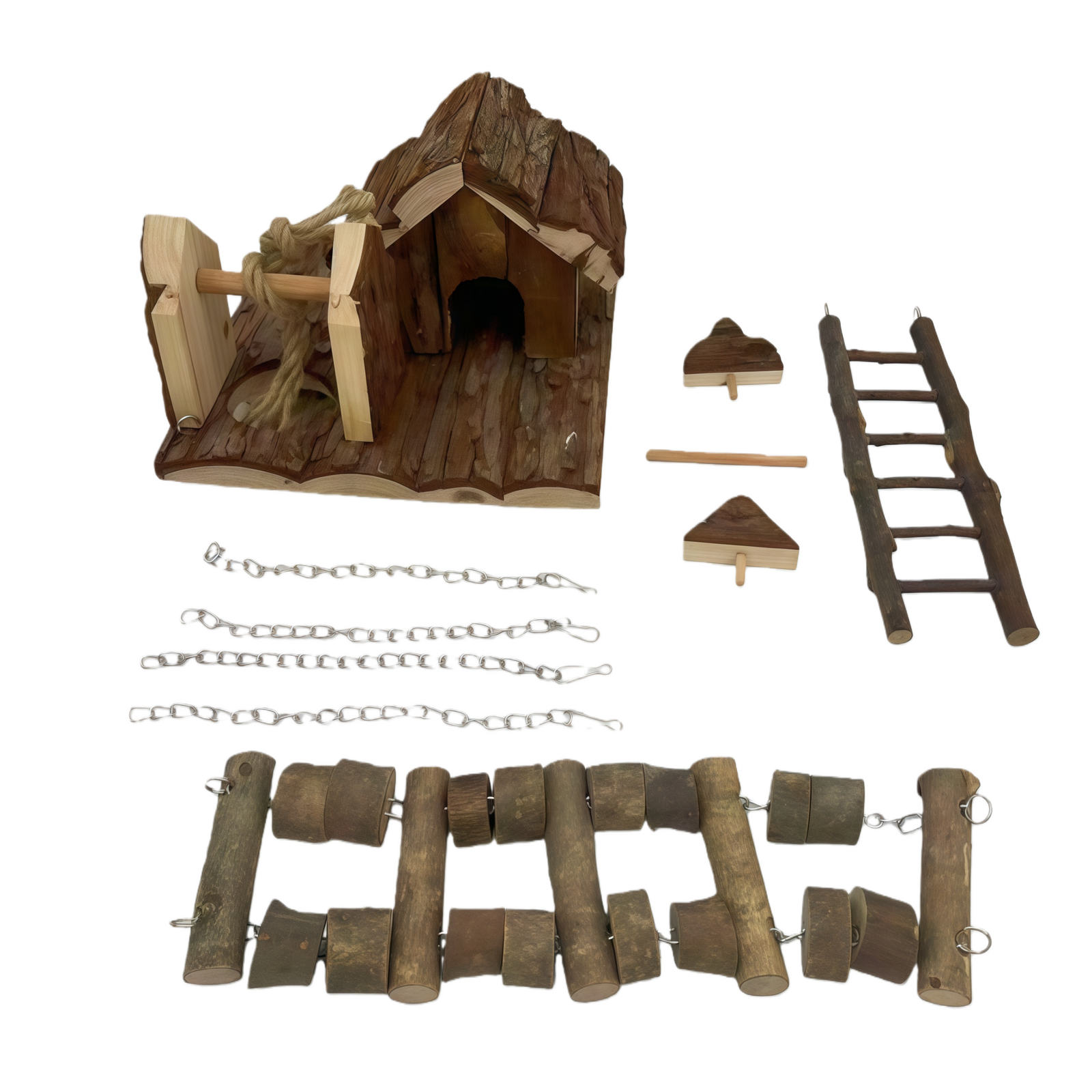 Exquisite castle and nest for a hamster, beautiful and cute. Use for taking rest, entertainment, and exercise for small pets. Made with wood, it is very safe for your little friend.